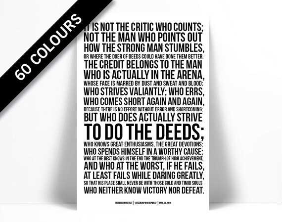 Theodore Roosevelt Man In The Arena Speech Typographic Print American History Teddy Roosevelt Inspirational Motivational Quote Art