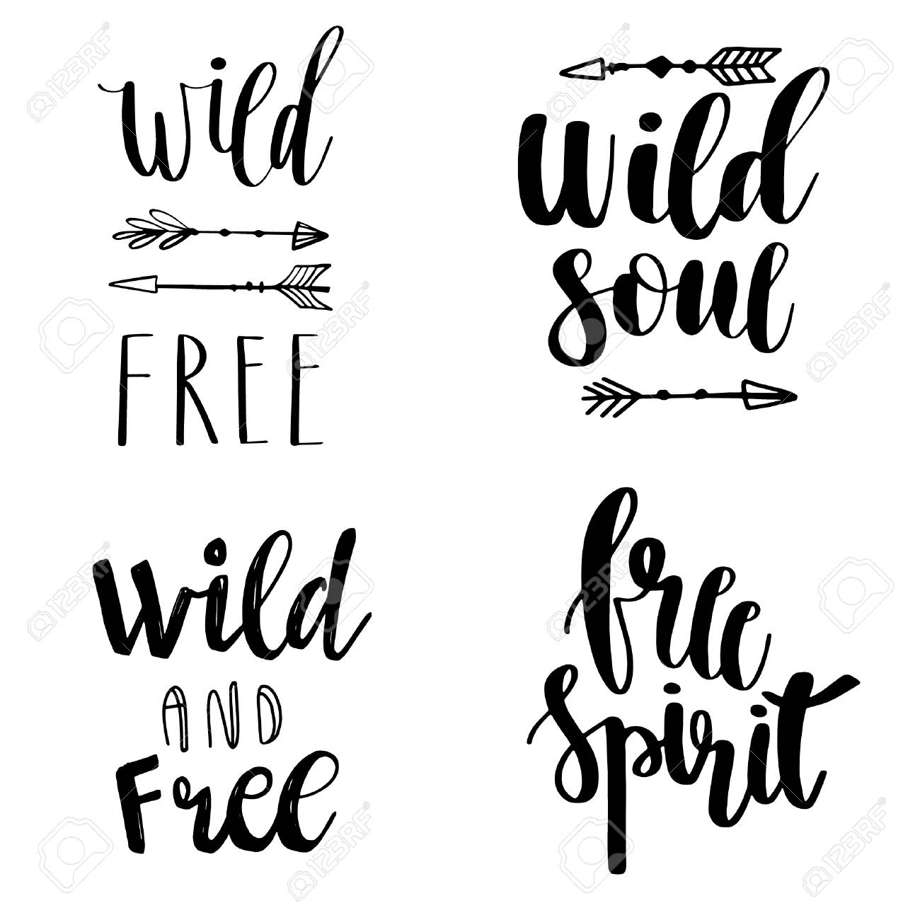 Boho Style Lettering Quotes And Hand Drawn Elements Wild And Free Free Spirit Wild Soul Phrases Vector Illustration