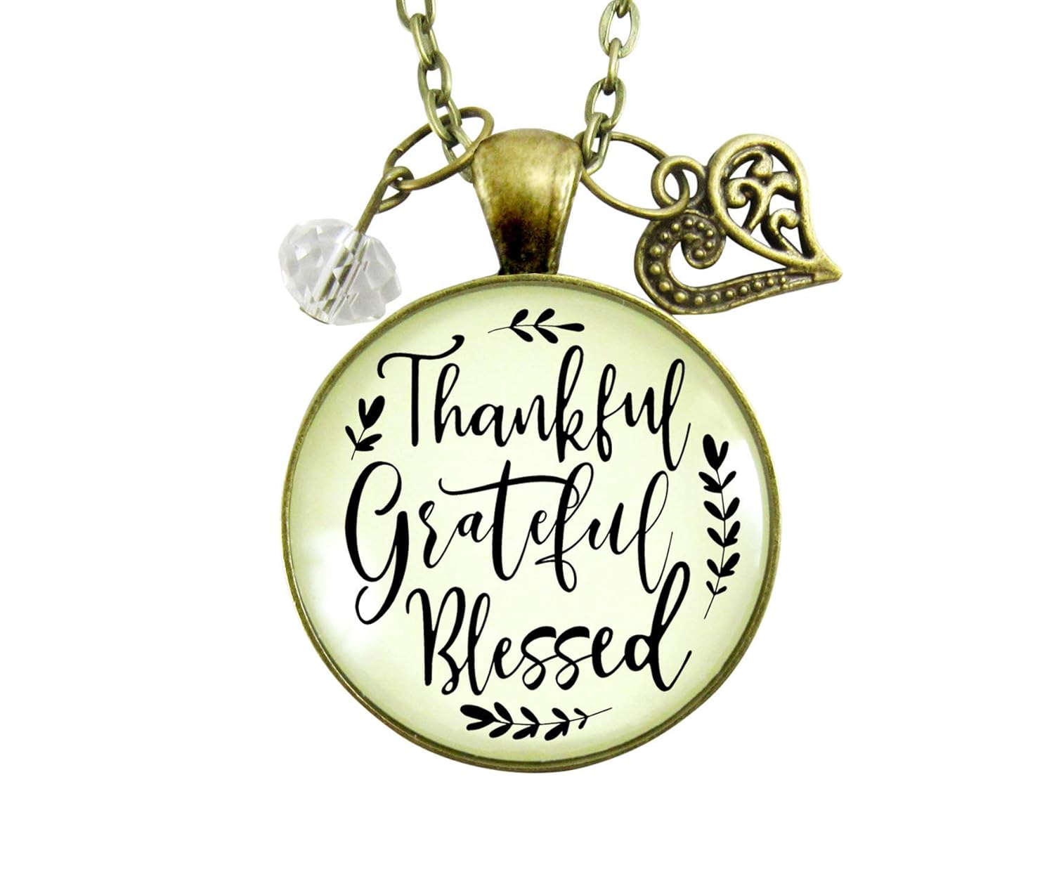 36 Thankful Grateful Blessed Necklace Bible Quote Vintage Inspired Pendant Heart Charm Blessing Jewelry For Women