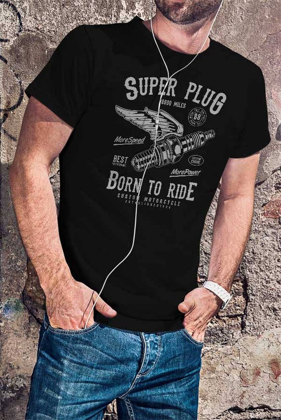 Super Plug Men Black Or White T Shirt Custom Motorcycle Tee Unique Design Shirt Quotes Tshirt Biker Rocker Tee Sizes S M L Xl Xxl