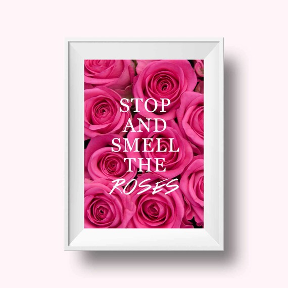 Stop And Smell The Roses Print Stop And Smell The Roses Quote Pretty Print Pretty Gift Inspirational Quote Office Print Girly Print