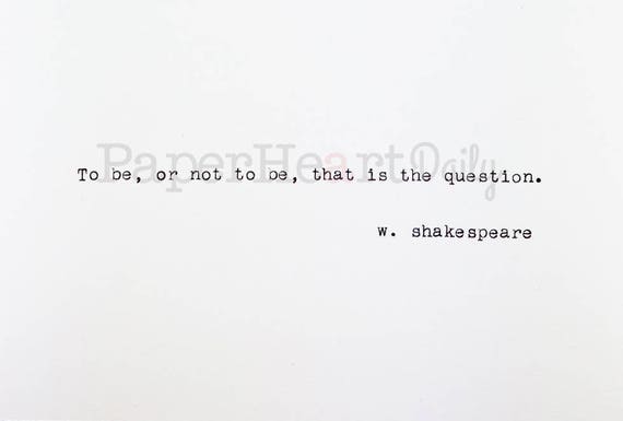 To Be Or Not To Be Typed Shakespeare Quote Hamlet Quote Typewriter Quote Typed On Cardstock Shakespeare Quote Theater Quote