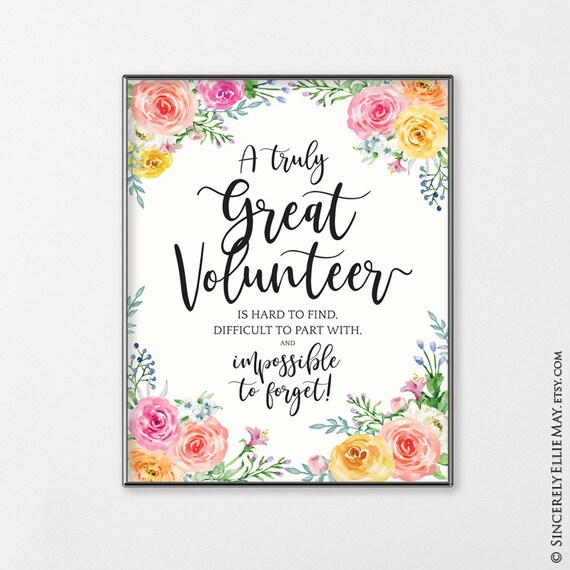 Volunteer Gifts Of Appreciation Thank You Printable Gift Wall Art Sign You Print With Quote A Truly Great Volunteer Is Hard To Find 40102