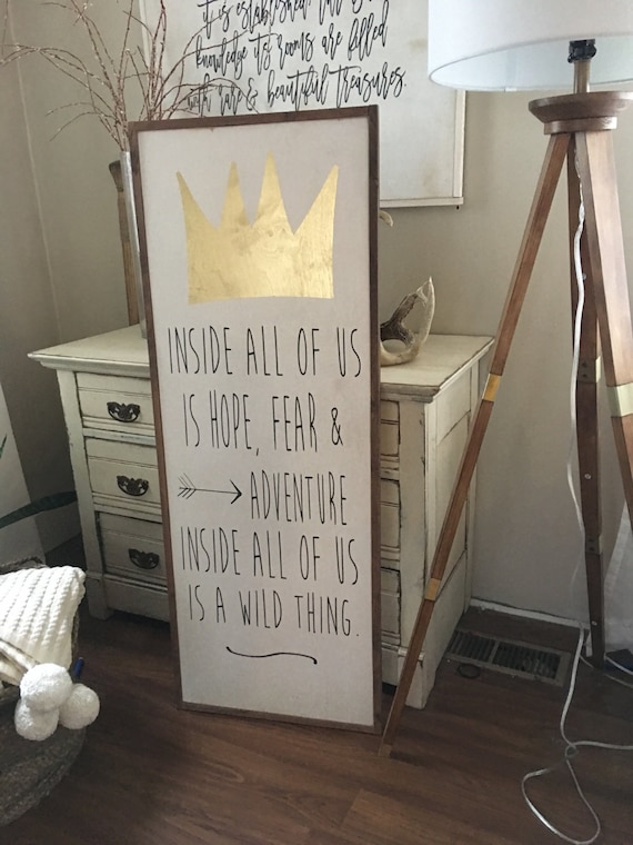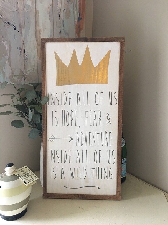 Nusery Wall Decor Wall Hanging Home Decor Wood Art Cute Quotes Inside All Of Us Where The Wild Things Are Framed Wood Sign