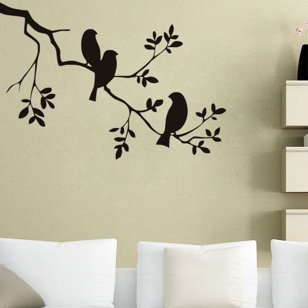 Birds On The Tree Branch Wall Stickers 57x85cm Vinyl Wall Art Decals Quotes Custom Color Wall Tattoo Stickers Muraux Sticker Wall Art Quotes Sticker