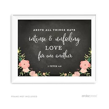 Andaz Press Biblical Wedding Love Quote Wall Art Chalkboard Floral Roses Print Poster 8 5x11 Inch Above All Things Have Intense And Unfailing Love