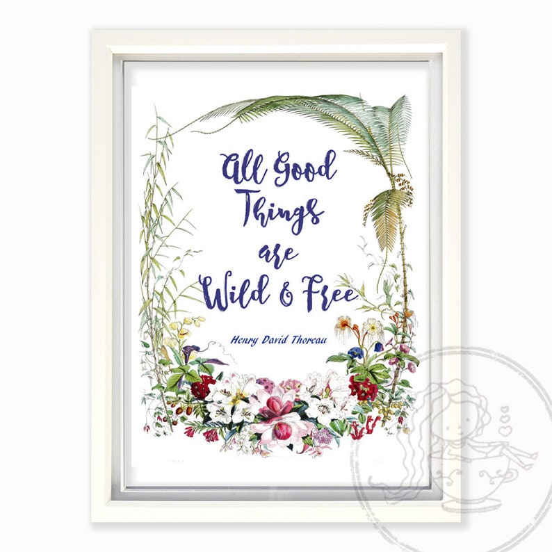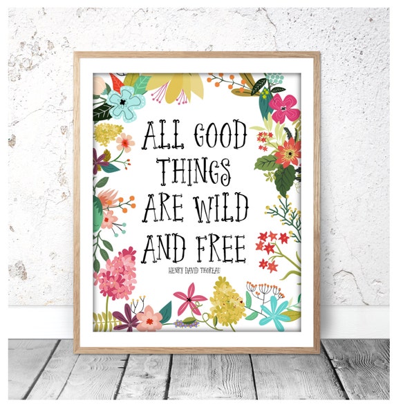 Multi Sizes All Good Things Are Wild And Free Printable Quotes Printable Art Wall Art Henry David Thoreau