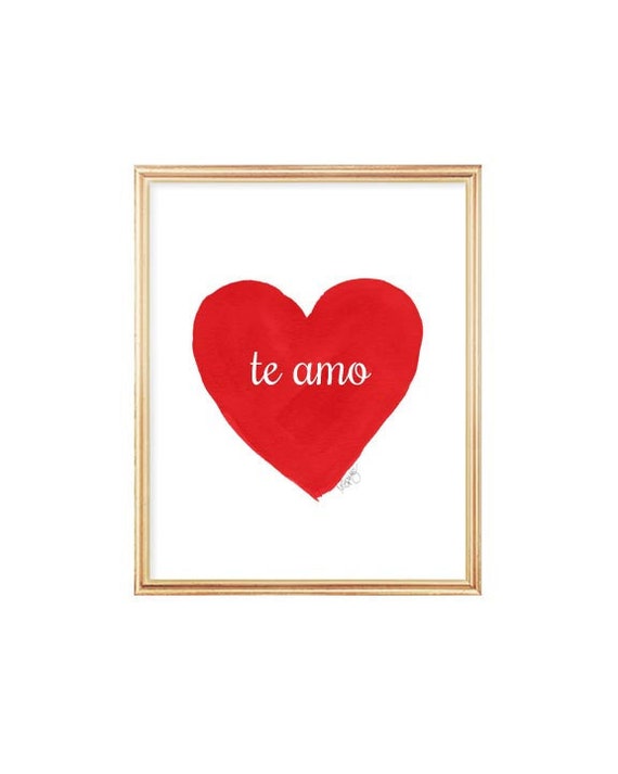 Te Amo Spanish Quote 8x10 Watercolor Heart Art Print Love Quote Spanish Language Print Spanish Art Red Heart Art Te Amo Print