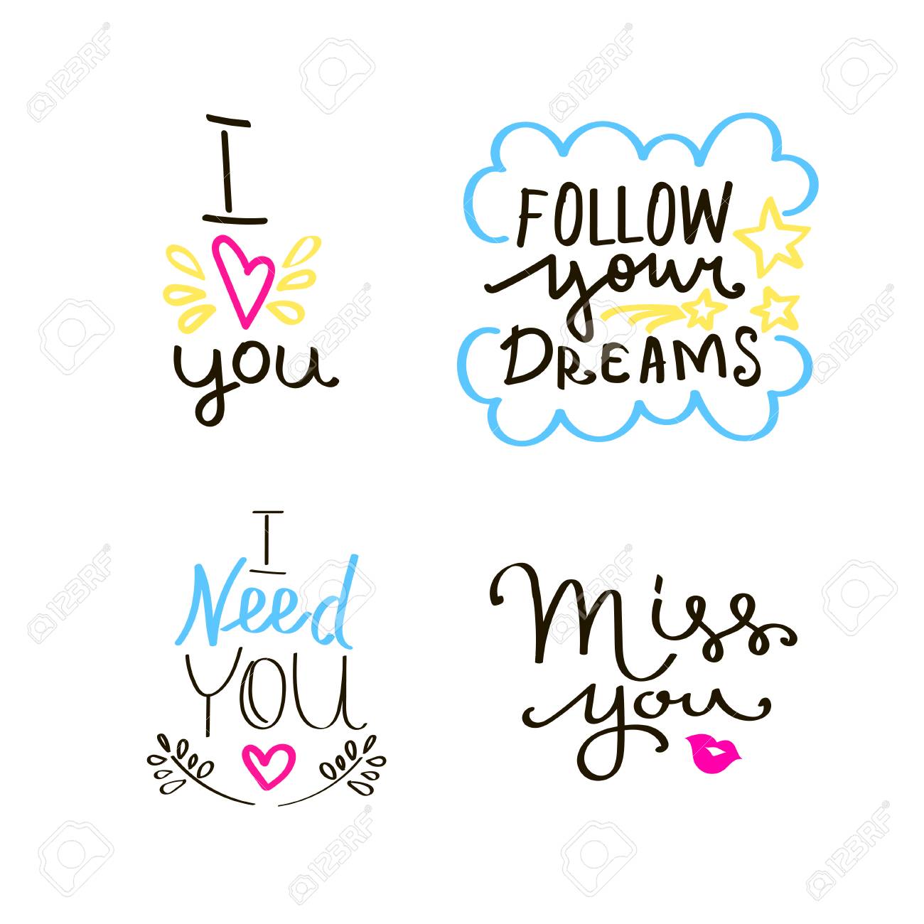 Lettering Set Of Quotes About Love Sweet Cute Inspiration Typography