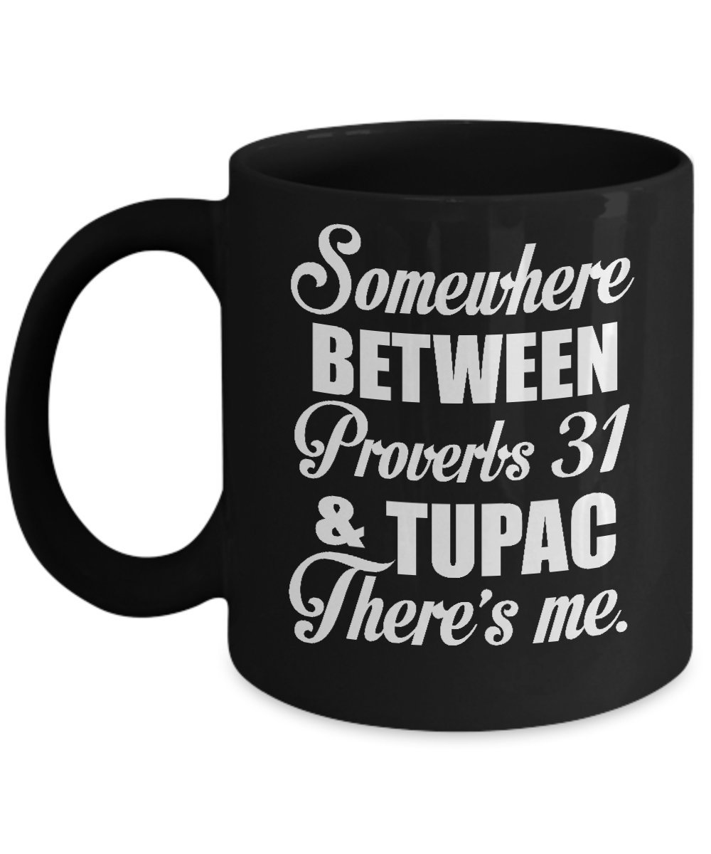 Somewhere Between Proverbs 31 And Tupac There S Me Mug Funny Humorous Christian Quotes Coffee Mugs Great Christmas Gifts For Best Friends Men Women