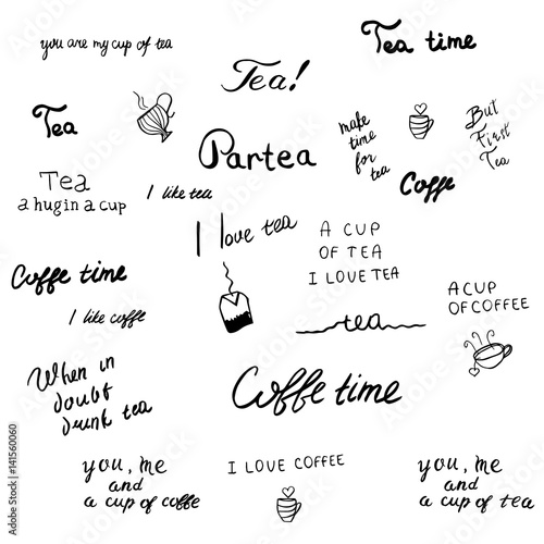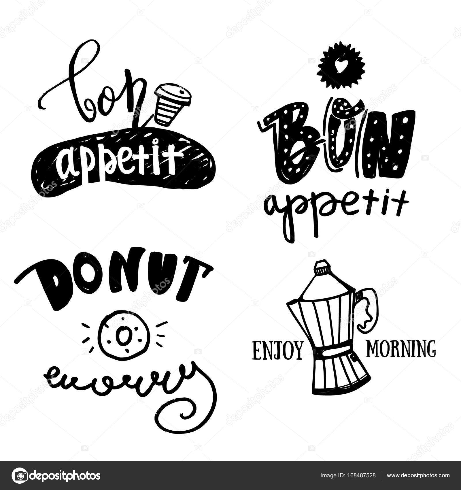 Set Of Hand Lettering Quotes With Sketches For Coffee Shop Or