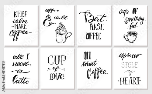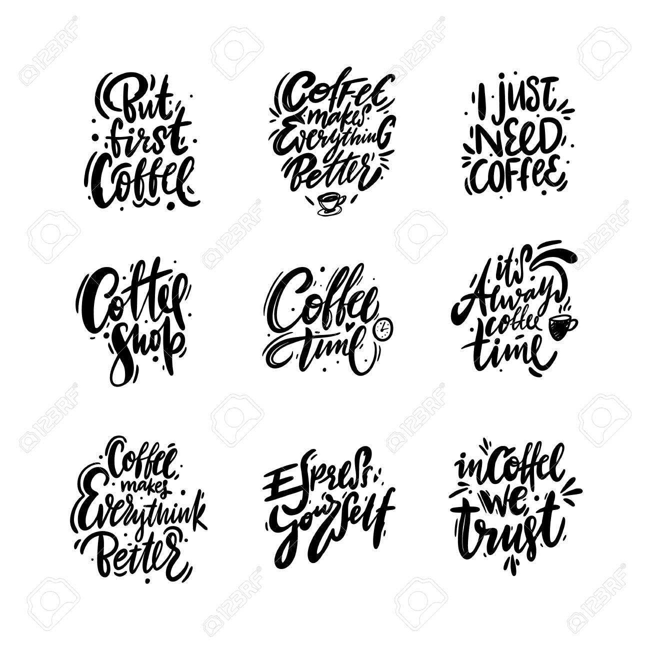 Quotes Coffee Typography Set Hand Drawn Vector Lettering Coffee