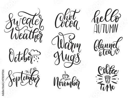 Fall Calligraphy Set Big Set Of Autumn Quotes Isolated On