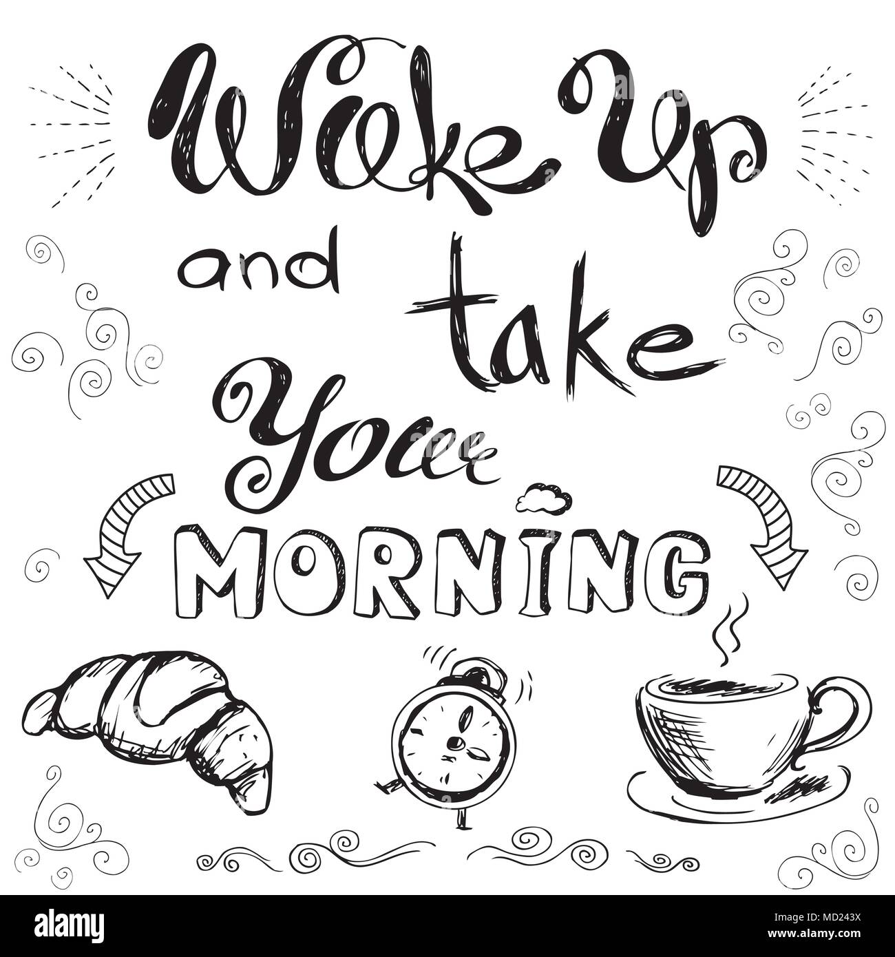 Hand Lettering Quote With Sketches For Coffee Shop Or Cafe