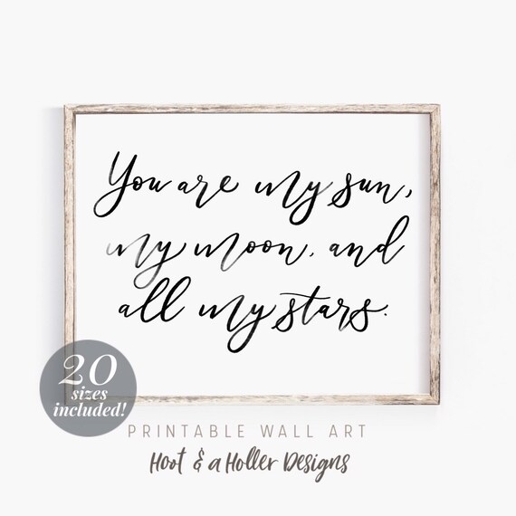 You Are My Sun Moon And All My Stars Printable Wall Art Sign Above Bed Quotes Modern Farmhouse Decor Prints Master Bedroom Wall Decor