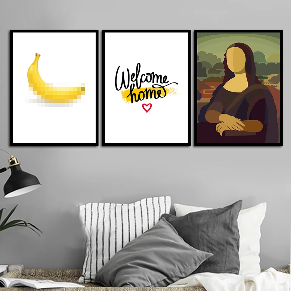 Us 1 9 40 Off Nordic Style Home Quote Poster Cartoon Abstract Mona Lisa Painting Modern Wall Art Canvas Print Banana Pictures Kids Room Decor In