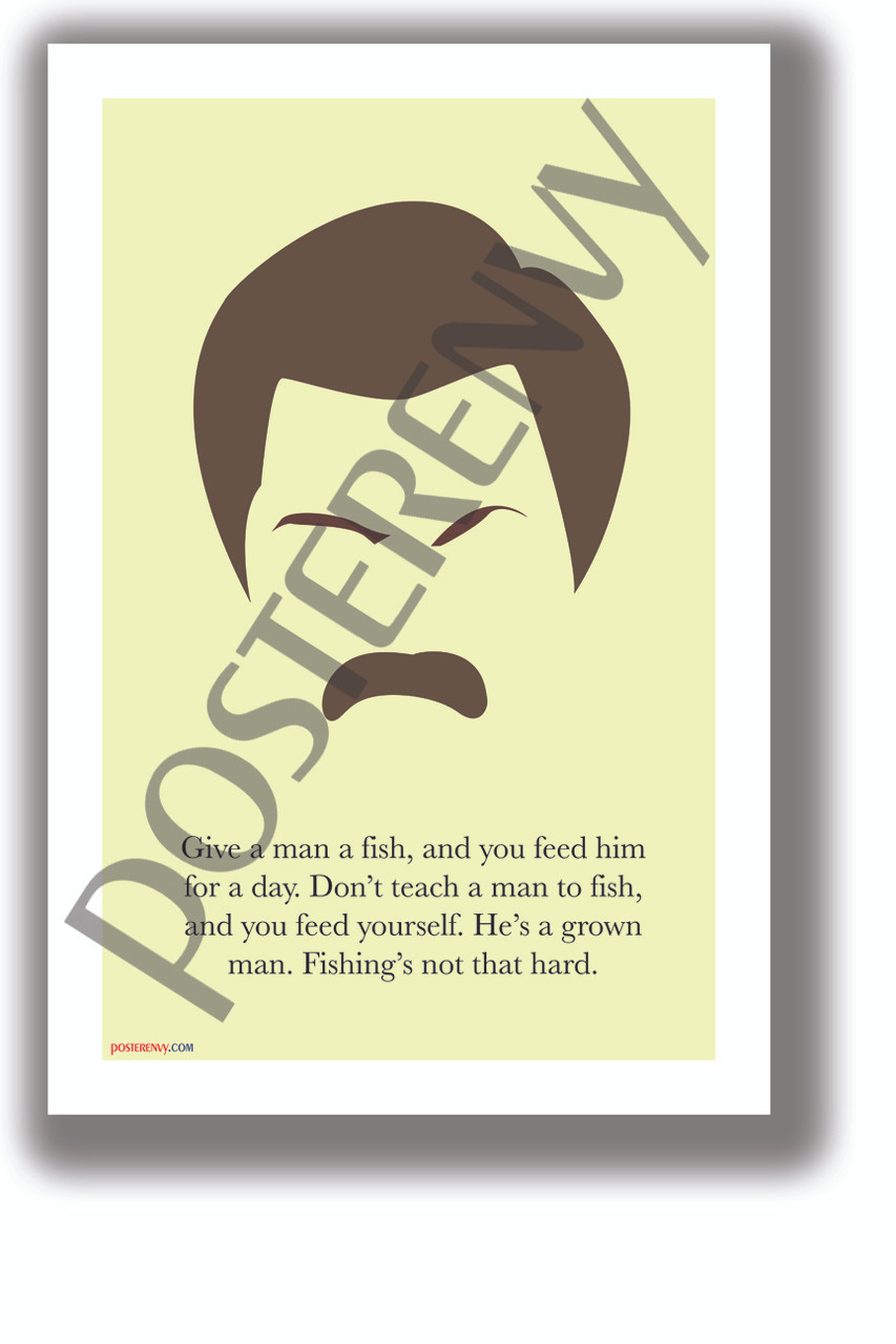 Ron Swanson Give A Man A Fish New Humorous Quote Poster
