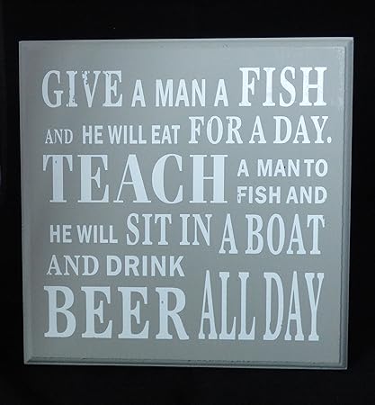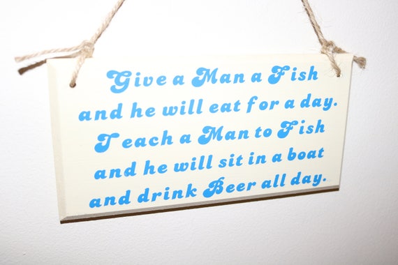 Funny Wooden Plaque Give A Man A Fish Amazon Co Uk