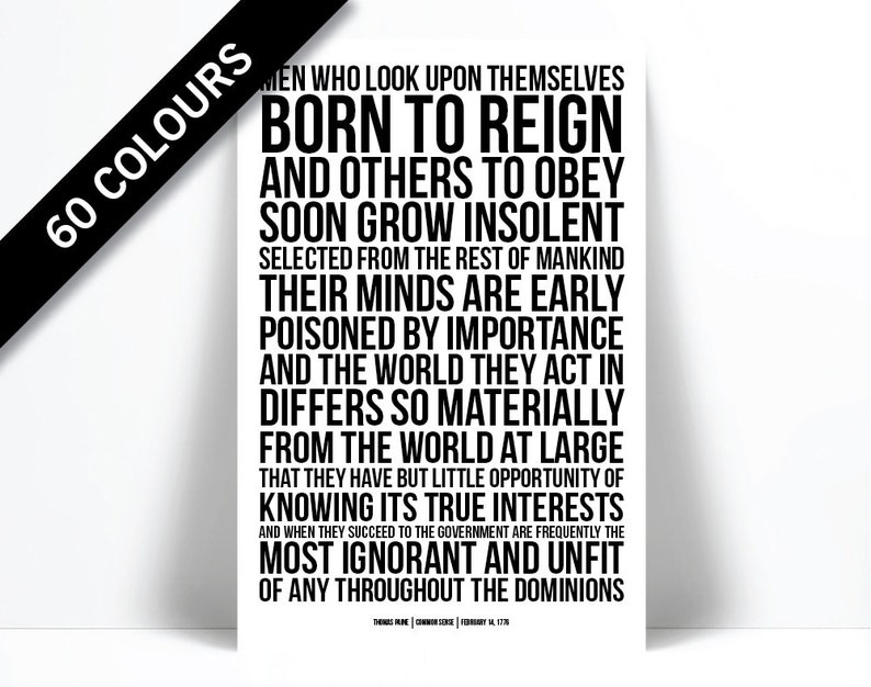 Thomas Paine Common Sense Quote Art Print Political Speech Activism American History Revolution Government Protest Poster Resistance