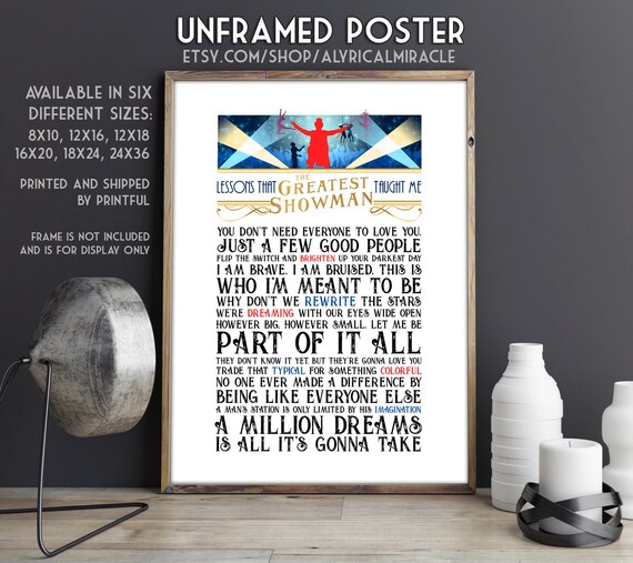 Lessons That The Greatest Showman Taught Me Unframed Typography Print Musical Movie Quote Wall Art Printful Hugh Jackman