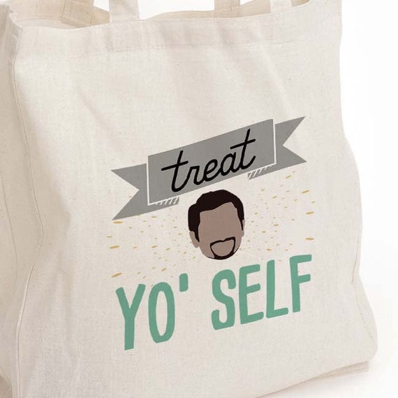 Parks And Rec Tote Treat Yo Self Tote Bag Parks And Rec Fan Gift Tom Haverford Quote Aziz Ansari Quote Canvas Tote Bag Eco Tote Bag