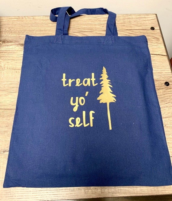 Treat Yo Self Tote Tom Haverford Quote Parks And Rec Tote Bag Treat Yourself Tote Funny Tote Gift Pine Tree Tote Bag Tom And Donna