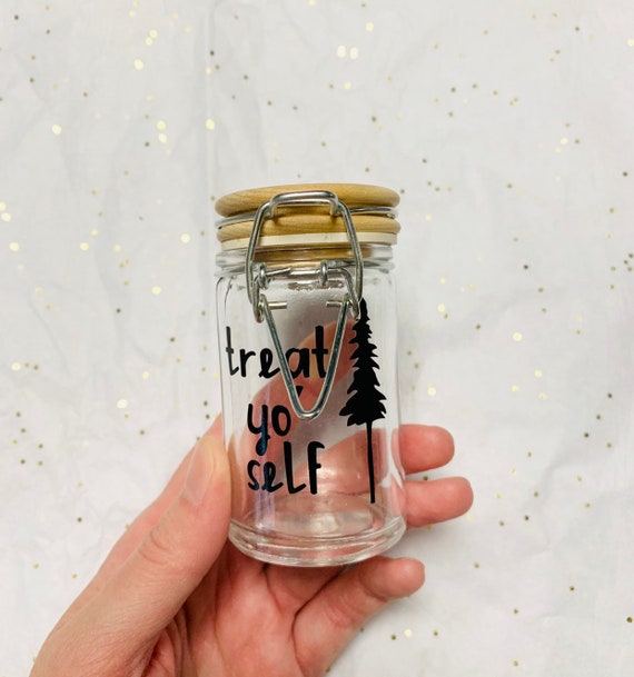 Treat Yo Self Jar Parks And Rec Stash Jar 2 Oz Storage Jar Weed Jar Craft Storage Herb Jar Stoner Gift Tom Haverford Quote
