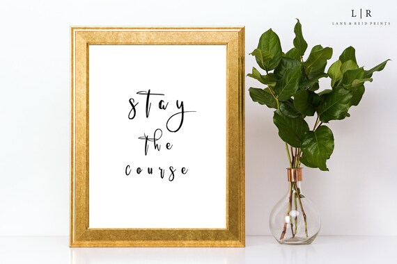 Stay The Course Printable Quotes Positive Quotes Motivational Quote Positive Wall Art Quote Wall Art Black And White