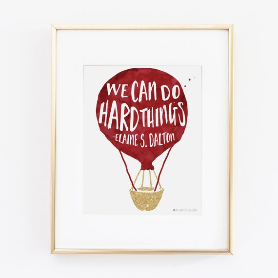 We Can Do Hard Things Red Balloon Printable Art Lds Wall Art For Home Lds Download Inspirational Quote Wall Art Lds Conference Quotes