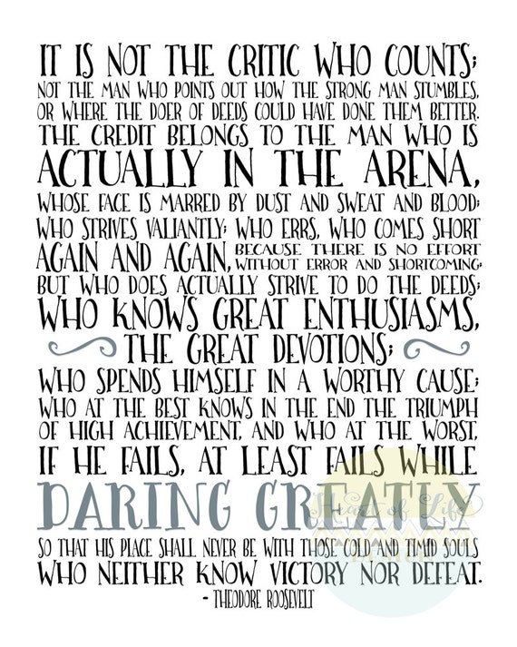 Printable Art Man In The Arena Quote Theodore Roosevelt Quote Office Quote Inspirational Quote Typography Print Heart Of Life Design