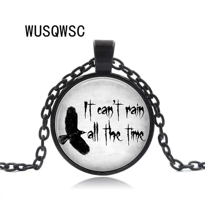 Wusqwsc Special Offer It Can T Rain All The Time Necklace Eric Draven The Crow Quotes Jewelry Round Glass Cabochon Necklace