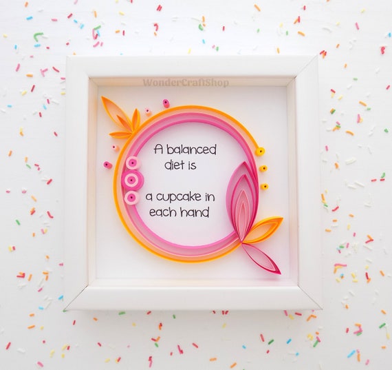 Cupcake Kitchen Decor Funny Quote Witty Gift Weight Loss Motivation Cafe Confectionery Decor A Balanced Diet Is A Cupcake In Each Hand