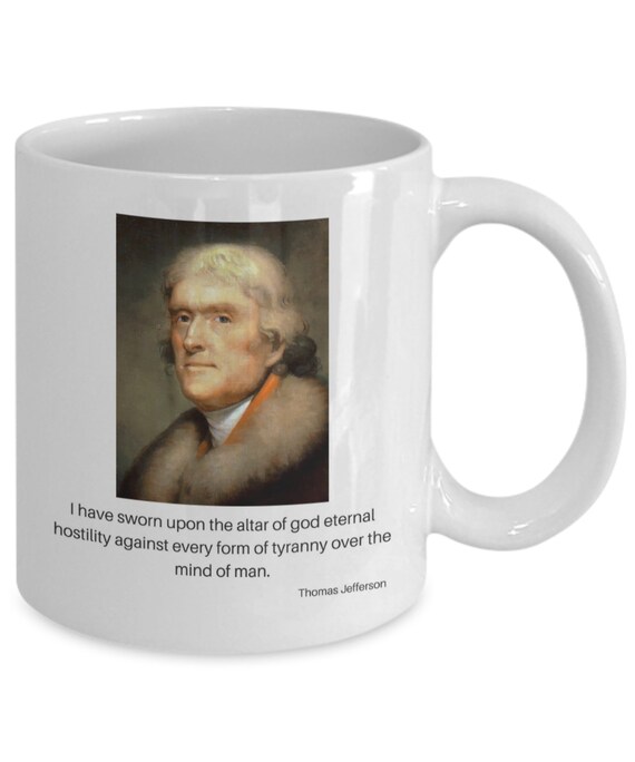 Thomas Jefferson Tyranny Quote Coffee Mug Peale Portrait White Ceramic 11 Oz