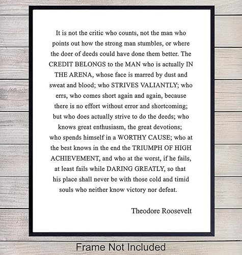 Teddy Roosevelt Man In The Arena Quote Wall Art Print 8x10 Unframed Photo Perfect Inspirational And Motivational Gift Chic Home Decor