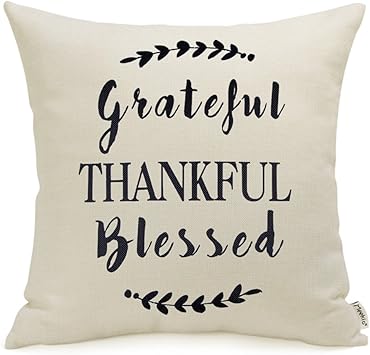 Meekio Farmhouse Decorative Throw Pillow Covers With Grateful Thankful Blessed Quotes Thank You Gifts 18 X 18 Inch