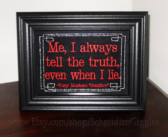 Scarface Quote The Truth Tony Montana 5x7 Inch Framed Embroidery Al Pacino Here Comes The Bad Guy Speech Movie Quotes Film Buff Gift