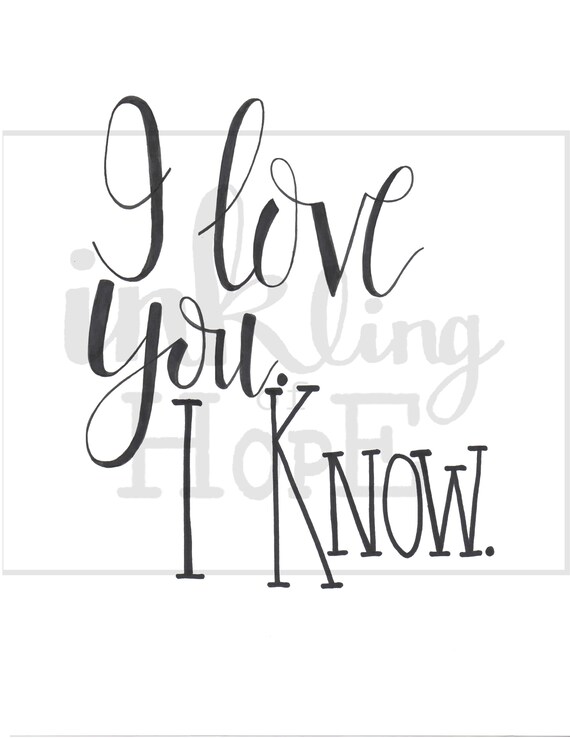 I Love You I Know Star Wars Medium Love Quote Poster Valentines Day Gift Movie Quote Print Sci Fi Art Nerd Geek Gift Instant Download