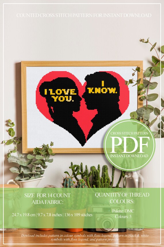 Star Wars Cross Stitch Pattern Pdf I Love You I Know Cross Stitch Han Solo Cross Stitch Pattern Princess Leia Cross Stitch
