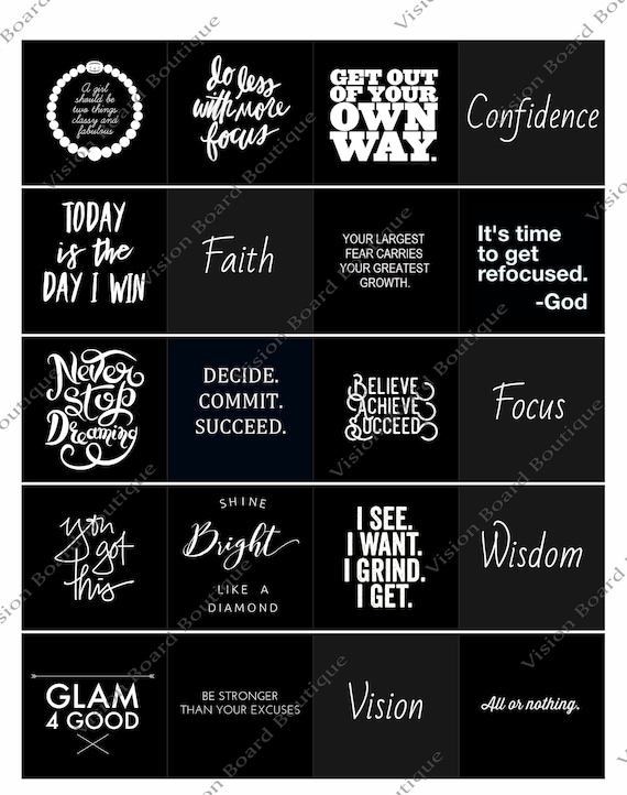 2020 Black Out Vision Board Vision Board Printable Quotes Download Cut Out Frame Wall Art Stickers Affirmations
